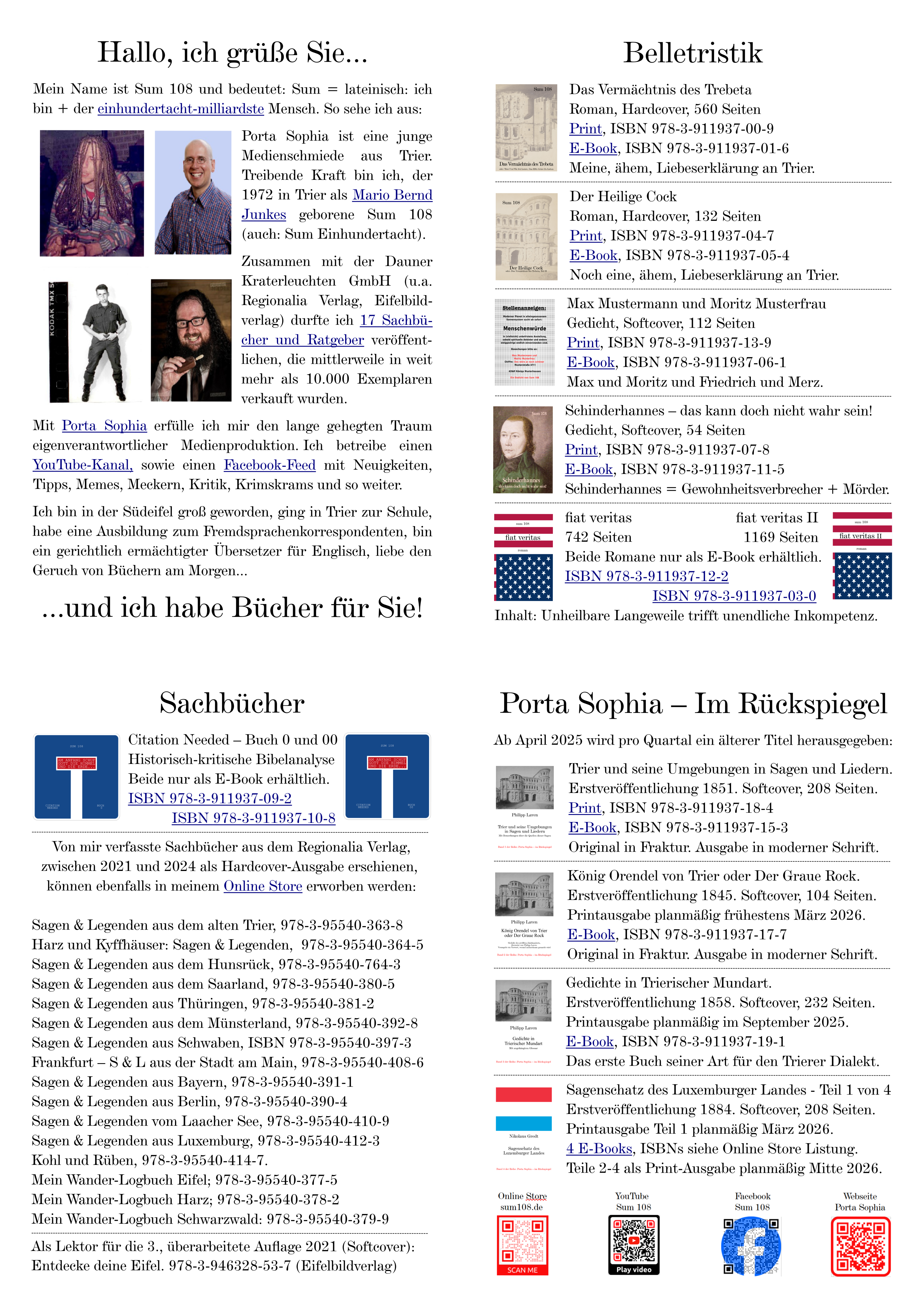 Porta Sophia ist eine junge Medienschmiede aus Trier. Treibende Kraft bin ich, der 1972 hier als Mario Bernd Junkes geborene Sum 108 (auch: Sum Einhundertacht).